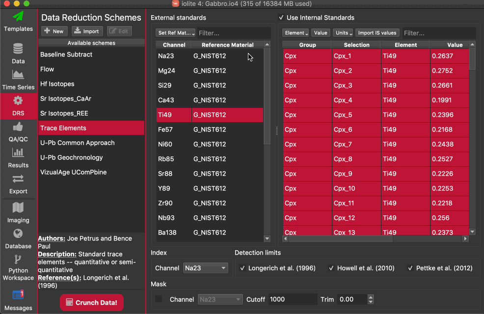 A choice of three LOD calculations (Longerich et al., 1996; Howell et al., 2010; or, Pettke et al., 2012) and full error propagation are hallmarks of iolite's approach and flexibility.